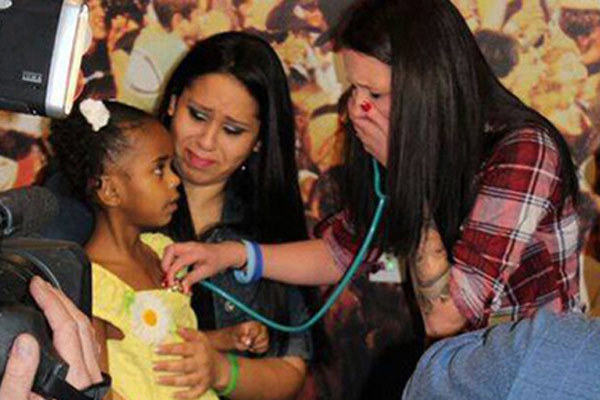 Bà mẹ không giấu nổi cảm xúc khi nghe nhịp tim của người con trai đã mất đang đập trong lồng ngực của một cô bé thông qua việc hiến/nhận nội tạng.