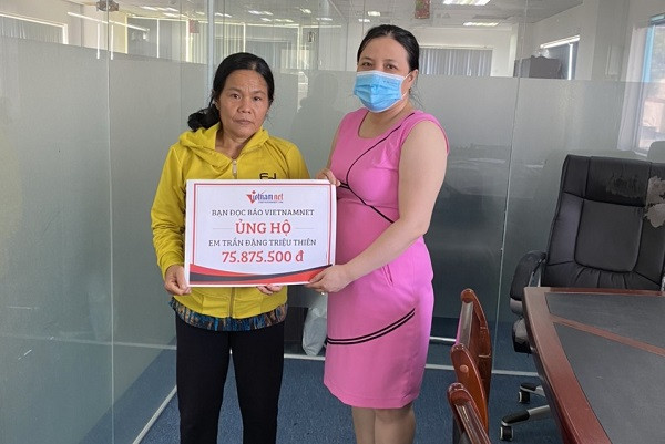 Sau khi báo VietNamNet đăng tải bài viết "Mẹ khóc nức nở, chắp tay xin cứu con trai hiếu thảo bị ung thư xương hiểm nghèo", hoàn cảnh đáng thương của gia đình chị đã nhận được nhiều quan tâm của bạn đọc. Ngoài số tiền 75.875.500 đồng do bạn đọc ủng hộ qua Báo VietNamNet, nhiều nhà hảo tâm đã liên hệ và ủng hộ trực tiếp cho gia đình chị.