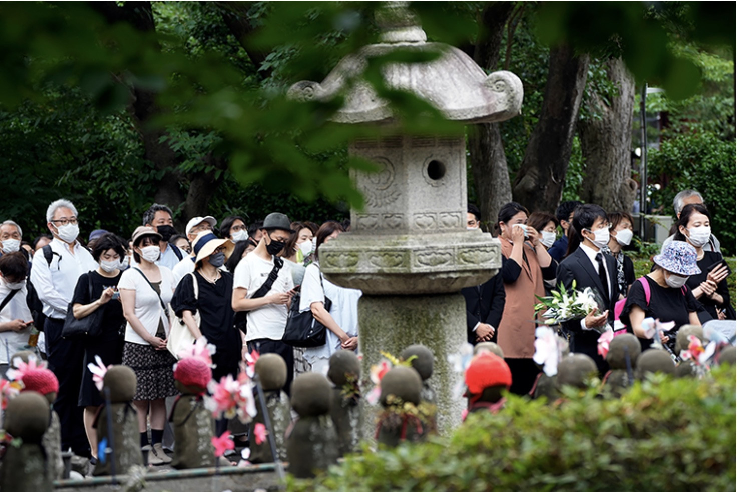 Hiện nay, người dân Tokyo đang xếp hàng dài tại văn phòng của LDP và chùa Jojoji để tỏ lòng tiếc thương cũng như để hoa viếng cựu Thủ tướng Abe Shinzo.