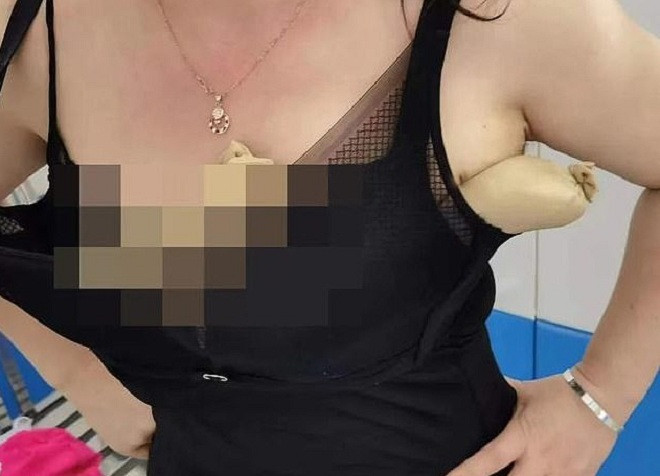 Theo chia sẻ trên tài khoản WeChat của Hải quan Trung Quốc, vào ngày 29/6, các nhân viên hải quan phát hiện một người phụ nữ cho 5 con rắn vào trong tất, và nhét vào trước ngực.