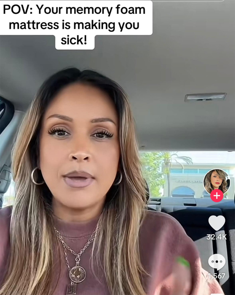 Theo Cơ quan Bảo vệ Môi trường Mỹ, các hóa chất trên có thể gây kích ứng mắt, mũi và họng; đau đầu; mất khả năng phối hợp; buồn nôn; tổn thương gan, thận hoặc hệ thần kinh trung ương. Tuy nhiên, theo Daily Dot, hầu hết các hóa chất được sử dụng trong sản xuất đệm chỉ gây hại khi thoát ra ngoài.