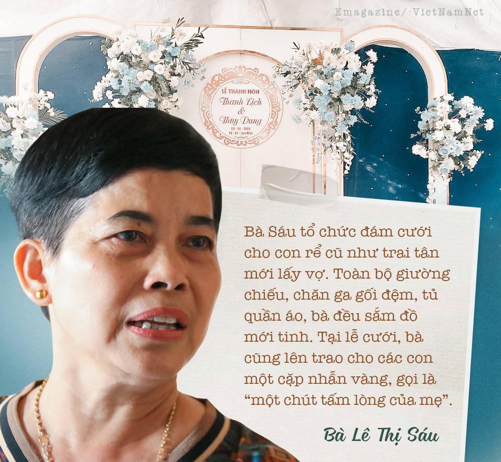 Coi Lịch là con trai, bà chuẩn bị phòng cưới cho con như trai tân lấy vợ. Toàn bộ giường chiếu, chăn ga gối đệm, tủ quần áo, bà đều sắm đồ mới tinh. Tính sơ sơ đã tốn chừng 50 triệu. Tại lễ cưới, bà cũng lên trao cho các con một cặp nhẫn vàng, gọi là “một chút tấm lòng của mẹ”.