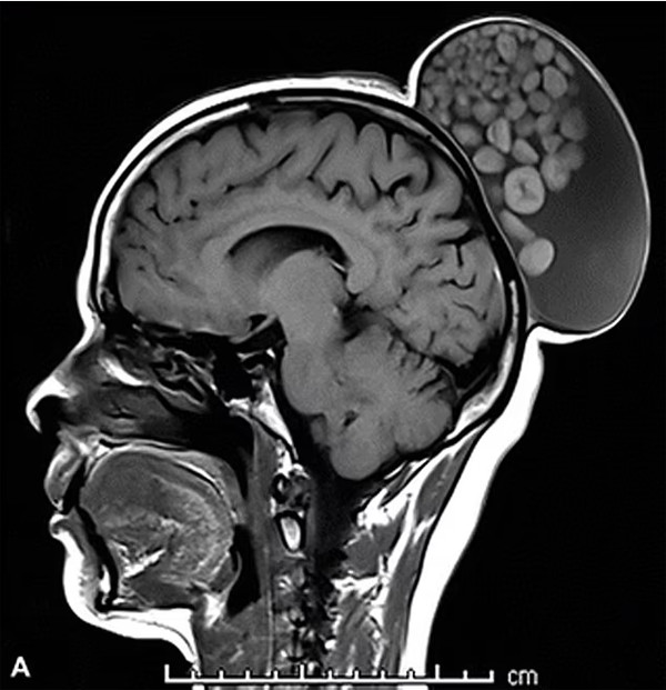 Công bố bức ảnh về khối u trên Radiology, bệnh viện cho biết, các mô phát triển bất thường trong u nang có kích thước khác nhau và giống như một túi sỏi. Viện Khoa học Y tế Cao cấp Sri Sathya Sai nhận định dạng bệnh này không phổ biến. Chụp cộng hưởng từ cho thấy khối u dài 15cm, rộng 10cm và cao 12cm.