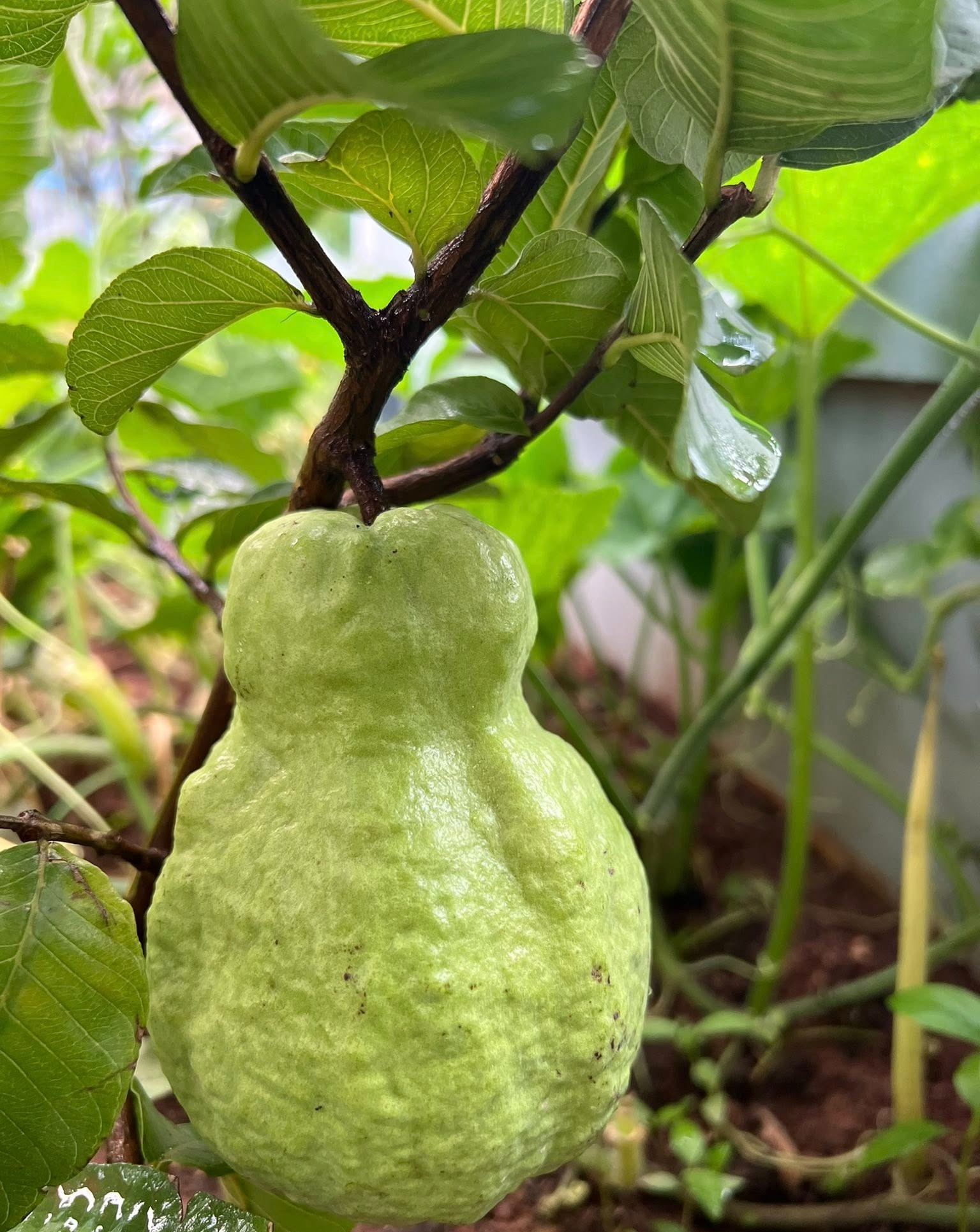 Khu vườn có diện tích hơn 200m2. Chị Quý thiết kế 10 bồn (luống) kích thước dài 4m, rộng 1,2m, cao 0,2m chuyên để trồng rau, củ, quả theo mùa. Một số bồn dài và cao hơn thì trồng cây ăn trái lâu năm như ổi, sung Mỹ, nho thân gỗ, roi, mít…