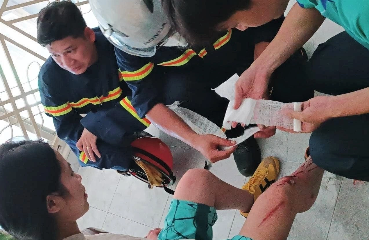 Rất may, trước khi bị rơi, chị H. đã leo xuống được khoảng giữa tầng thứ 2 và 3 của căn nhà 4 tầng. Toàn thân người phụ nữ sạt vào bề mặt xi măng thô nhám của hai vách tường. Khi được cứu lên, nạn nhân bị trầy xước khắp người, phải khâu nhiều mũi ở vết rách ở đầu gối.