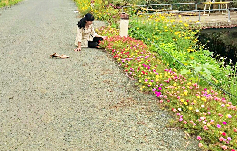 Ngắm những vạt hoa mình trồng bung nở trong nắng, bà vui đến quên hết mệt mỏi và càng mê công việc trồng hoa, làm đẹp tuyến đường. Hoa mười giờ vừa tàn, bà đã trồng thêm dừa cạn, sao nhái, cúc, mào gà...