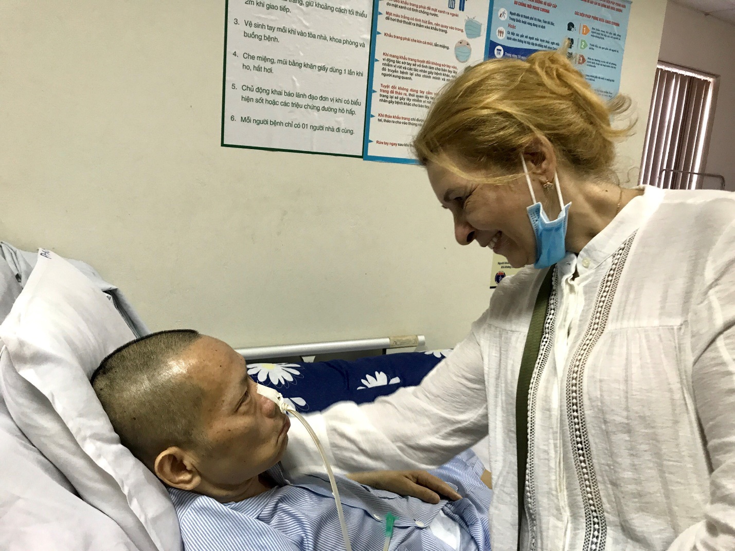 Hướng ánh mắt nhìn chồng, đôi tay bà Svetlana liên tục xoa bóp hết tay rồi lại đến chân. Cứ thế, một ngày hai lần người phụ nữ này lại thu xếp công việc rồi tất tả chạy vào viện.