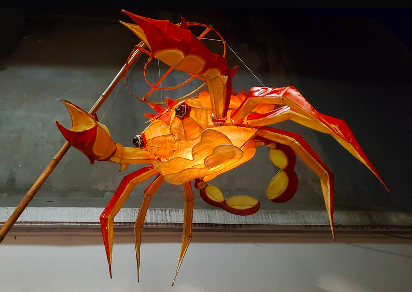 Chiếc đèn con cua sống đầu tiên dán bằng giấy nhiễu được hoàn thiện vào năm 2018, dành riêng cho Bảo tàng Hà Nội.