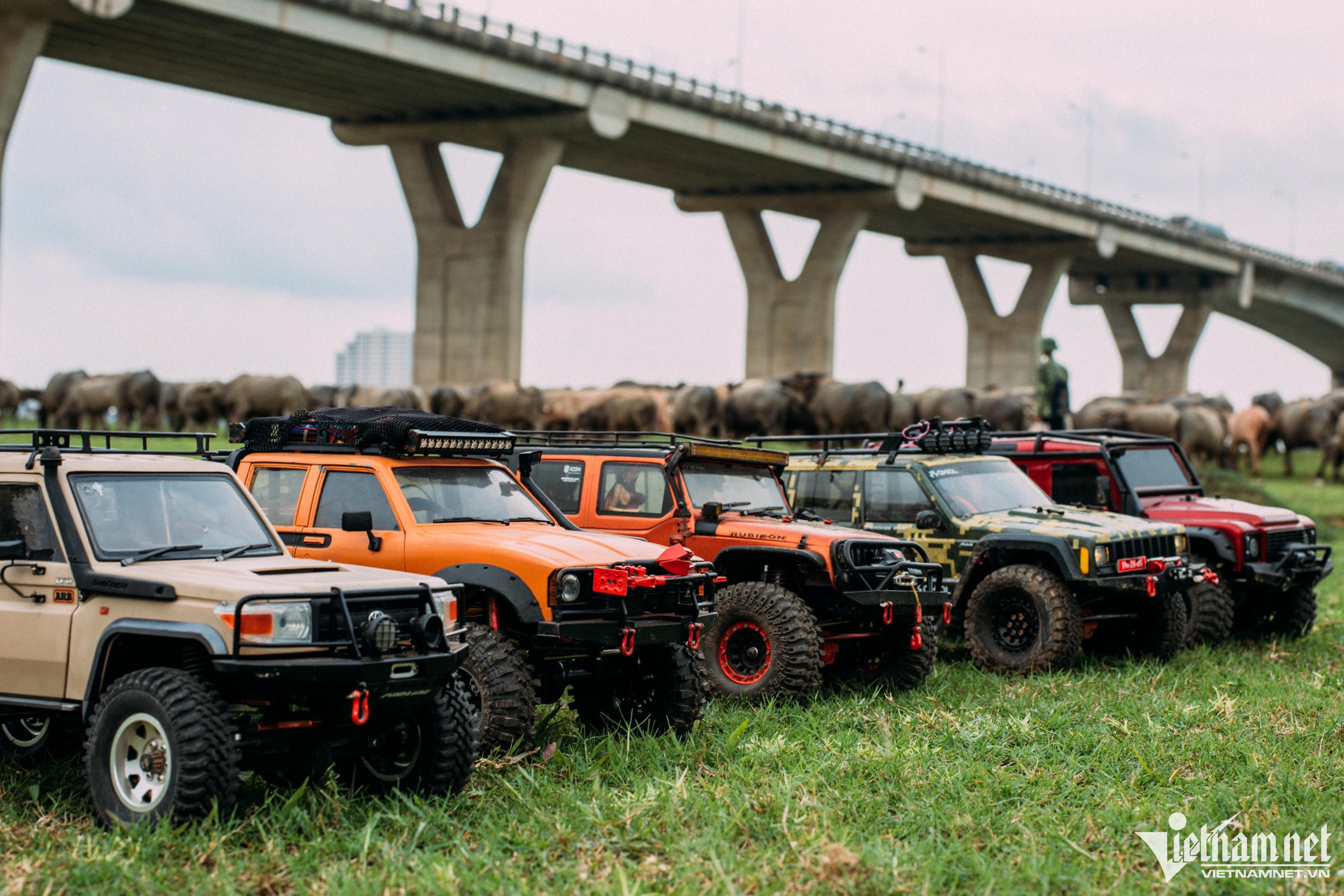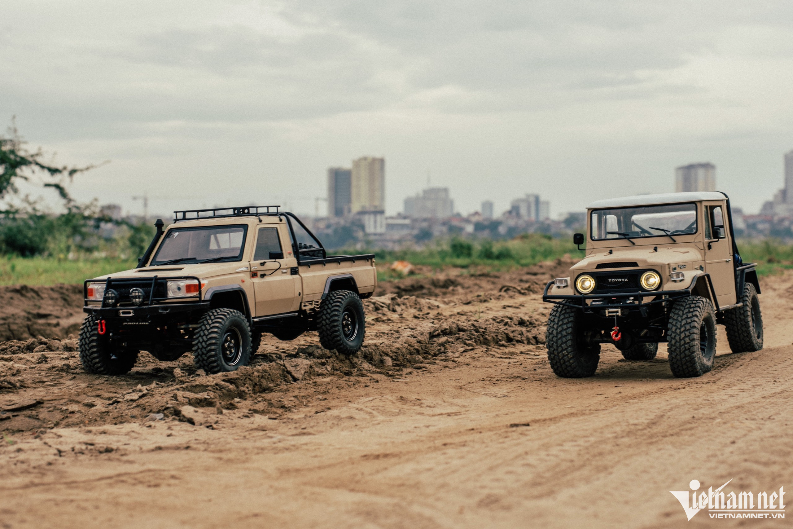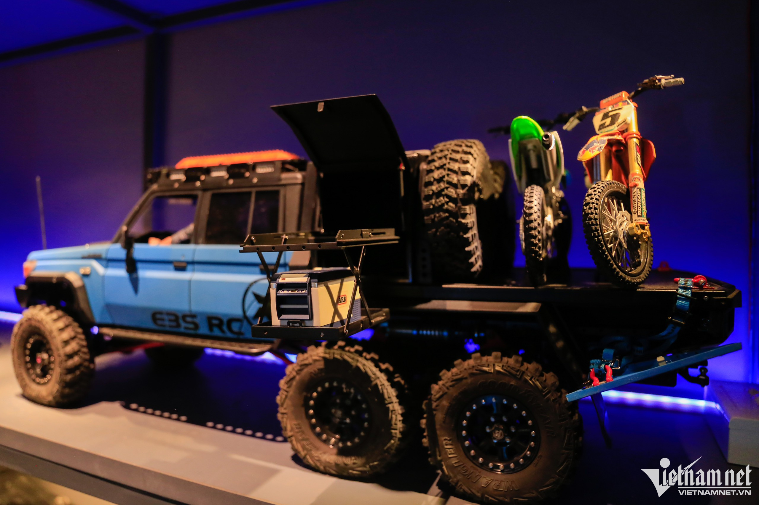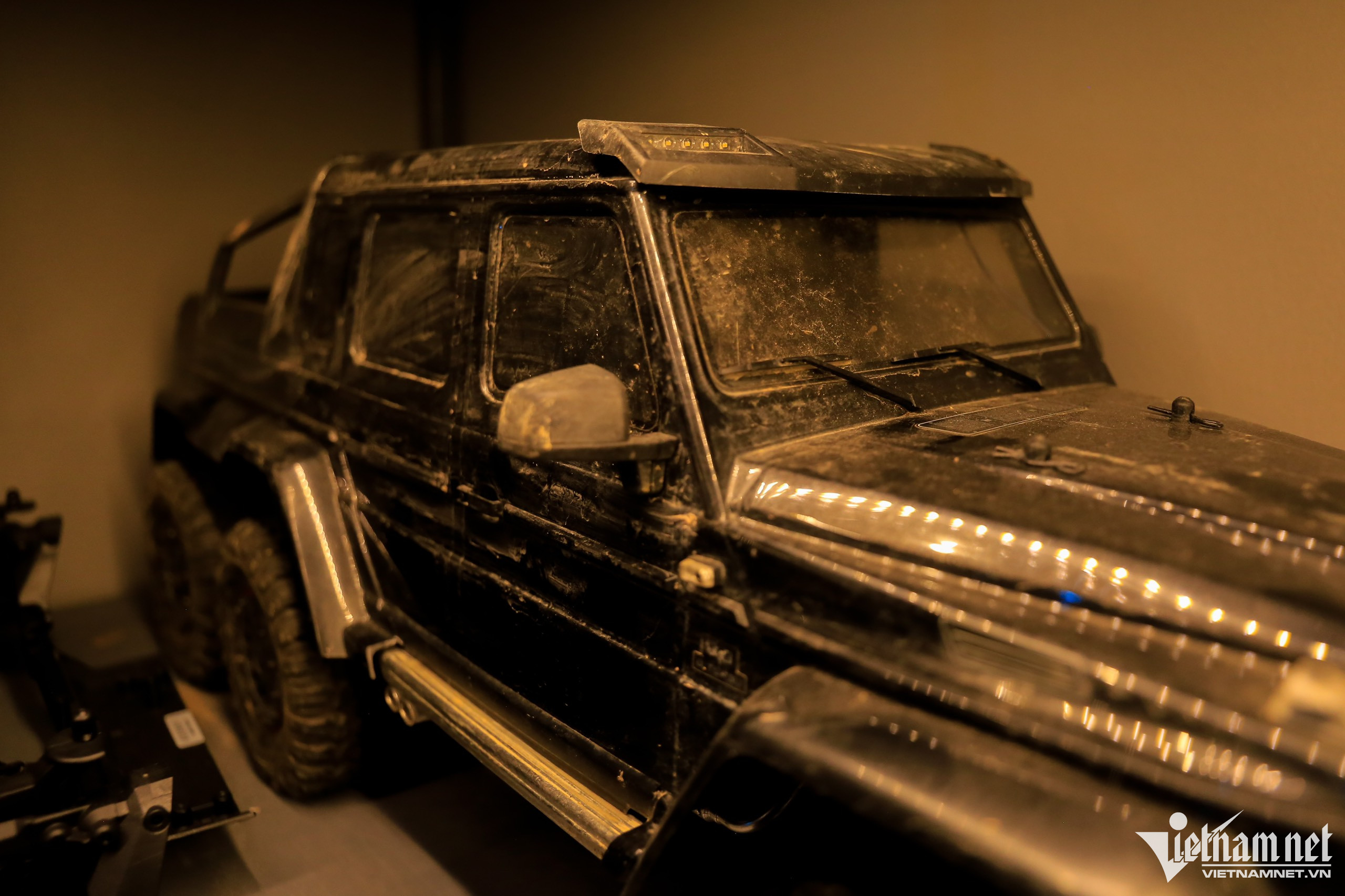 Trong ảnh là chiếc xe Land Cruiser 79 bản tỷ lệ 6x6, dòng xe nổi tiếng tại Australia. "Sau khi nhìn mô hình trên mạng xã hội, tôi khao khát có được nó và dành gần 2 năm để chuẩn bị linh kiện. Tôi nhờ các thành viên trong câu lạc bộ sáng chế một số phụ kiện để hàn gắn thay đổi toàn bộ kết cấu. Chi phí để hoàn thiện mô hình này đã tiêu tốn gần 50 triệu đồng", anh chia sẻ. Chiếc Toyota Landcuiser FJ45 được lược bỏ một số chi tiết thừa, nâng cấp bánh to và phình hơn. Khi đi vào địa hình hiểm trở có sỏi đá, bùn lầy xe sẽ thích nghi tốt. Những chiếc xe còn nguyên vết bẩn, không rửa mới thấy đúng chất "dân chơi off-road". Chạy trên địa hình bằng phẳng, nó có thể đạt vận tốc đến 150km/h, ngoài ra còn biểu diễn được một số kỹ thuật như drift, cua gắt.Để điều khiển một chiếc xe thành thạo theo ý của mình, người chơi phải rèn luyện khoảng 6 tháng đến một năm. Vị chủ nhân những chiếc ôtô này cho rằng anh phải giống như một tài xế lái xe thật, biết điều tiết ga và nắm rõ sự chuyển động của bánh xe.