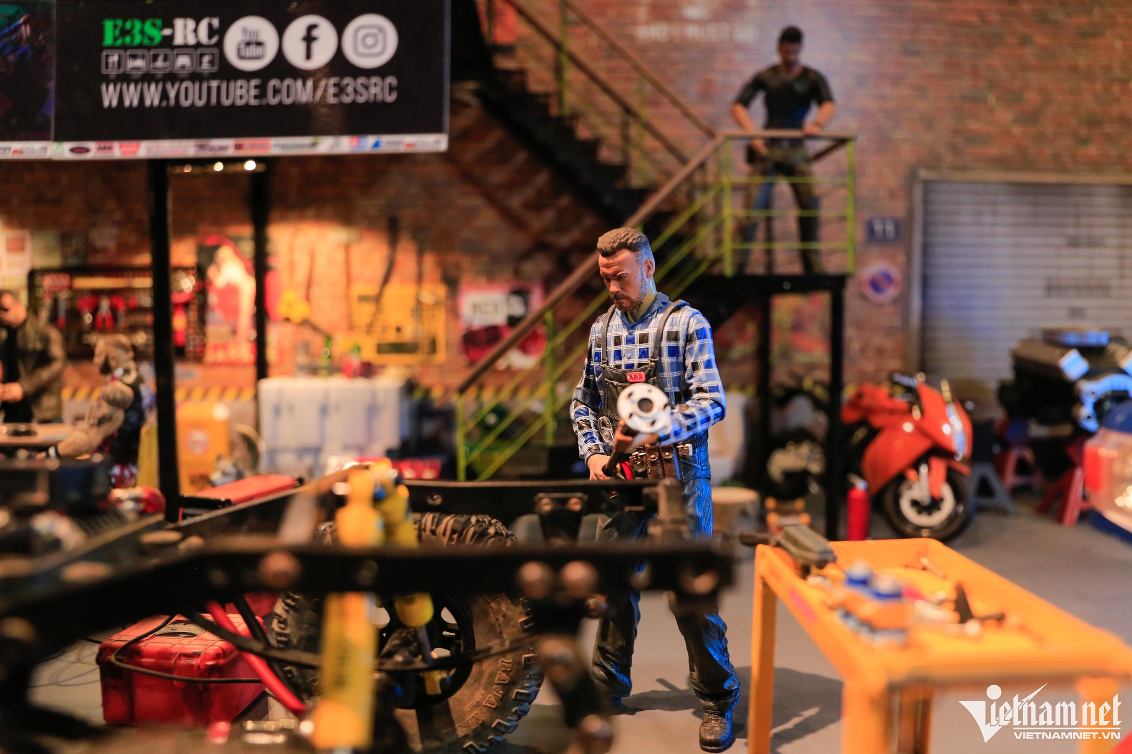 "Làm sao xe phải di chuyển nhẹ nhàng, hạn chế việc phóng nhanh qua những con đường xấu gây hư hại cho xe", anh nói. Khi chơi theo kiểu off-road, xe thường xuyên phải đi vào những con đường đầy sỏi đá, bùn lầy, di chuyển chậm nhưng rất khỏe, đòi hỏi người chơi phải nhiều kỹ năng để chinh phục các con đường gồ ghề, hiểm trở rồi trở về một cách an toàn.Suốt 7 năm gắn với niềm đam mê ôtô điều khiển, anh Kiên cũng sưu tầm thêm nhiều mô hình dạng người, mô phỏng cuộc sống, sinh hoạt của những tay lái thực thụ.Những mô hình này nhìn thoáng qua nhiều người dễ lầm tưởng người và cảnh thật với đầy đủ chi tiết như một gara ôtô thực sự.