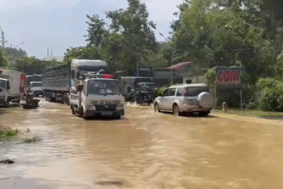 Mưa lớn gây ngập úng, CSGT dùng xe chuyên dụng chở người dân