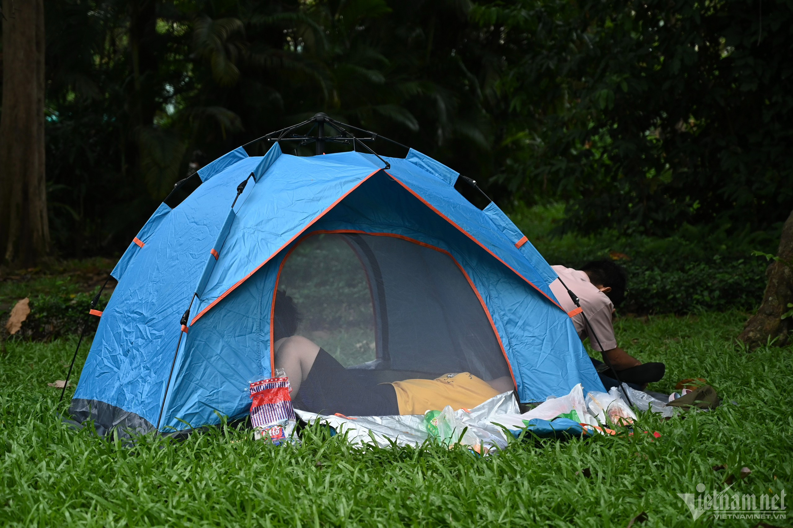 Nhân dịp 30/4, nhiều gia đình, bạn trẻ mang theo lều trại, đồ ăn tới Thảo Cầm Viên (TP.HCM) tận hưởng kỳ nghỉ lễ.