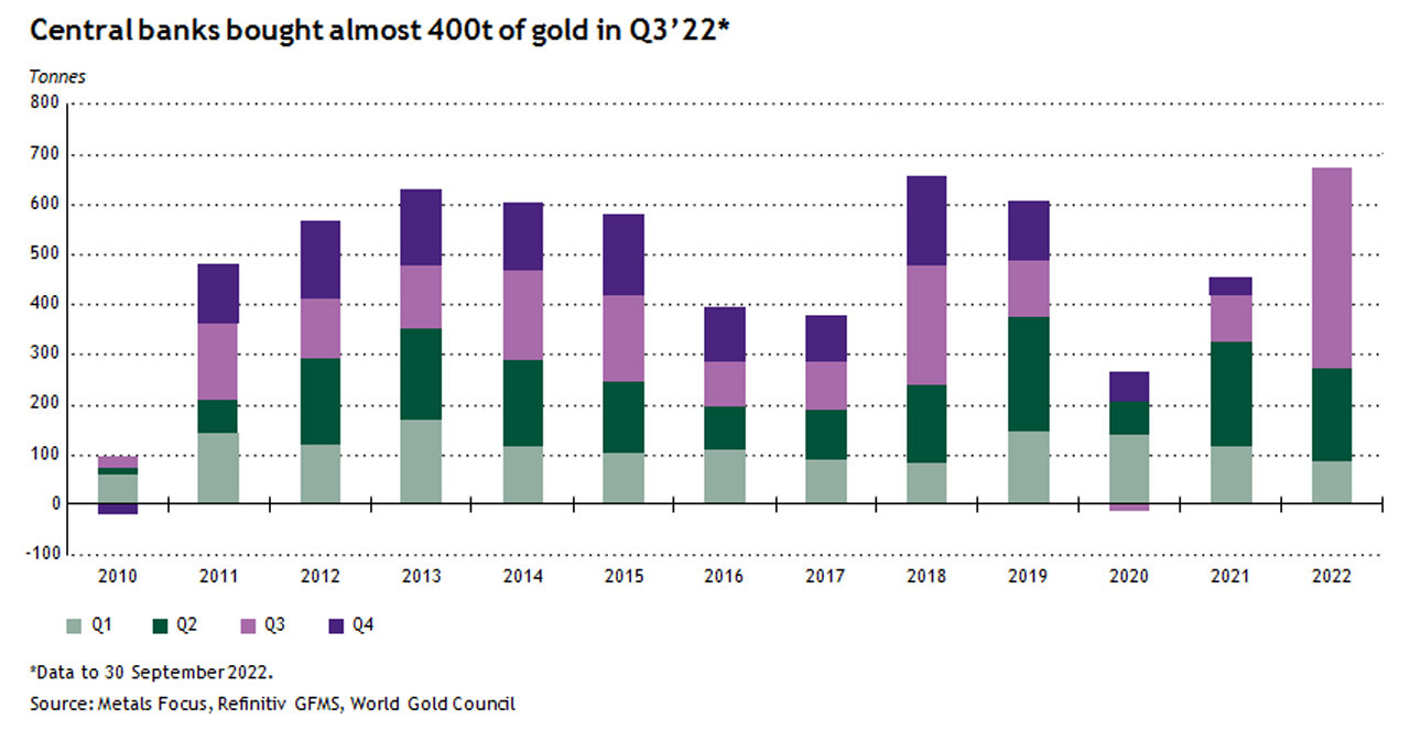 Trong khi đó, các ngân hàng trung ương toàn cầu đã mua gần 400 tấn vàng trong quý 3, tăng 115% so với quý trước.