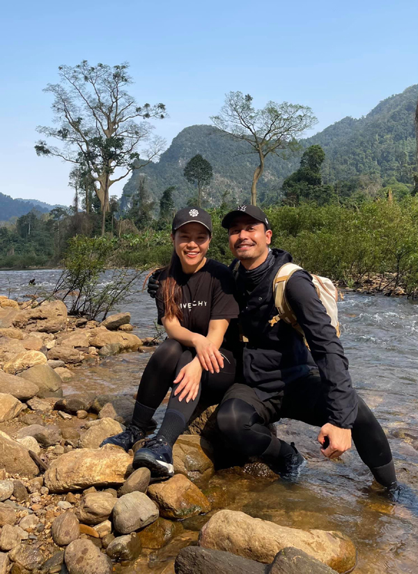 MC Phan Anh và vợ trong một chuyến đi phượt ở Quảng Bình.
