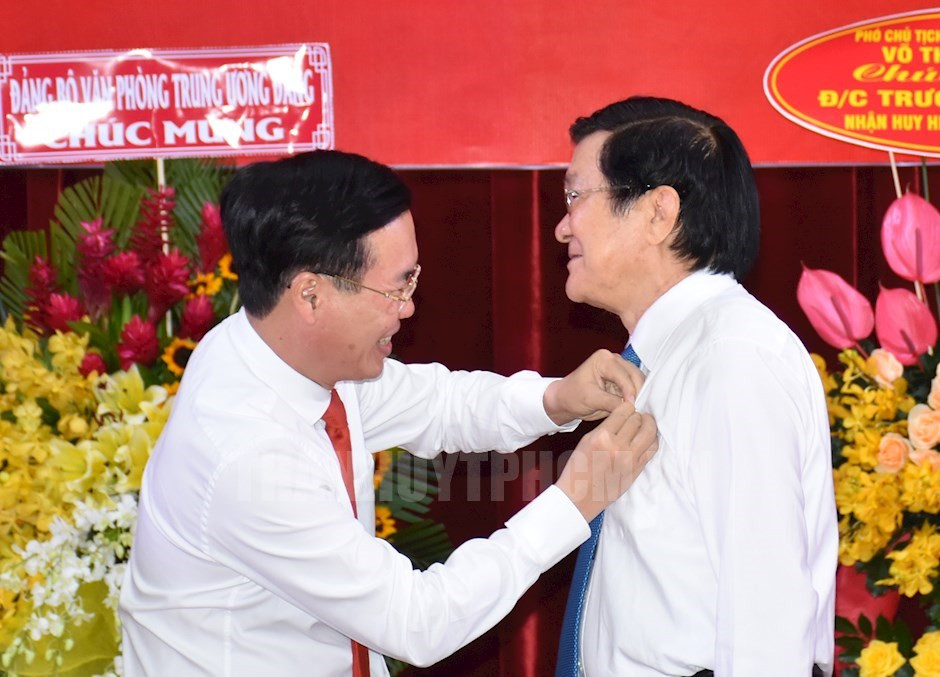 Sáng 8/8, tại TPHCM, Đảng bộ Văn phòng Trung ương Đảng đã tổ chức Lễ trao Huy hiệu 50 năm tuổi Đảng tặng nguyên Ủy viên Bộ Chính trị, nguyên Chủ tịch nước Trương Tấn Sang.
