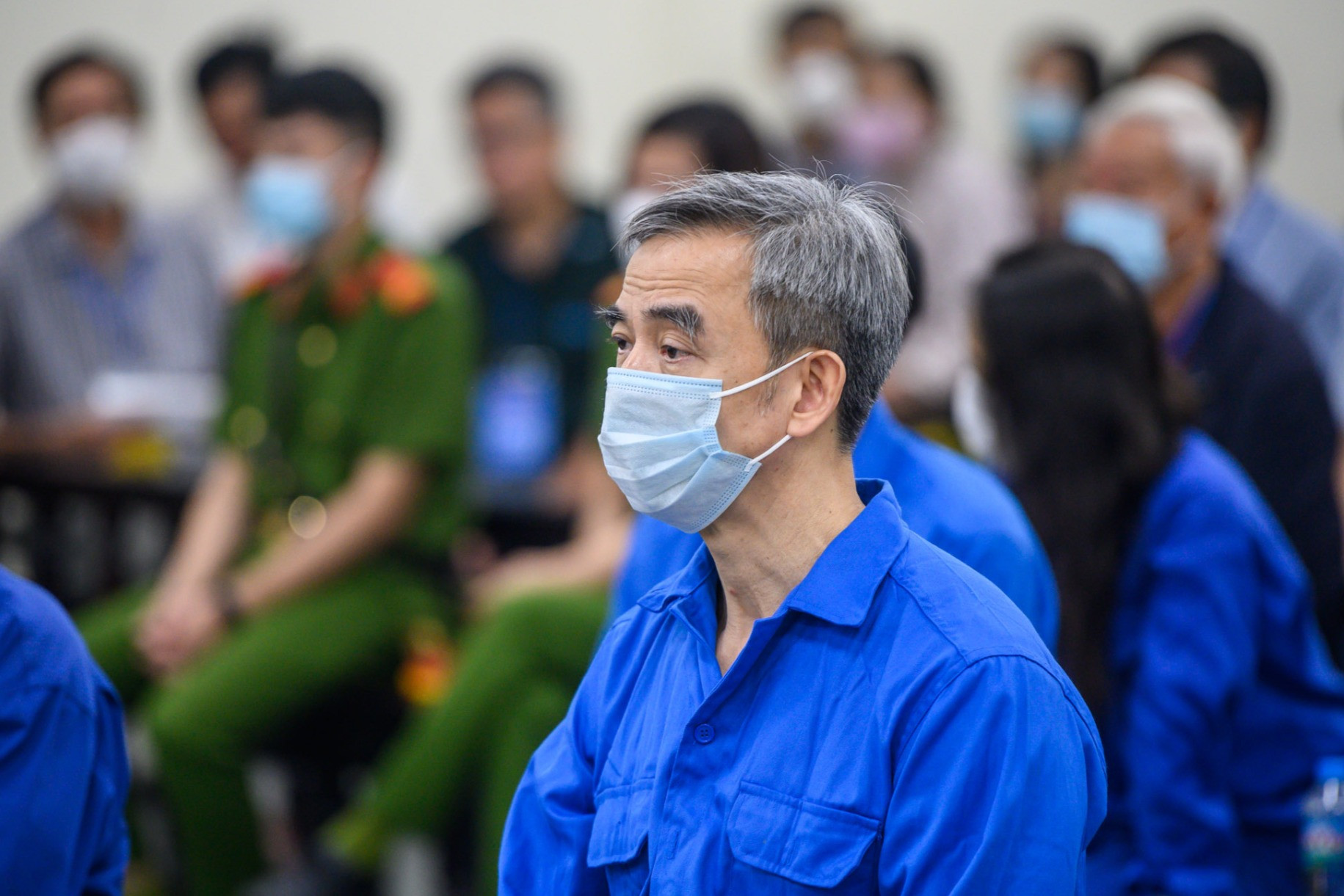 Cựu Giám đốc Bệnh viện Tim Hà Nội Nguyễn Quang Tuấn xuất hiện tại tòa với mái tóc bạc trắng, đôi mắt trũng sâu, thất thần. Ở hàng ghế dành cho bị cáo, ông Tuấn ngồi lặng yên, đôi bàn tay xoắn vào nhau, chân xỏ dép tổ ong run rẩy.