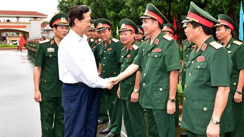 "Phải chuẩn bị tốt cho chiến tranh tự vệ trong mọi tình huống góp phần ngăn ngừa các cuộc tiến công xâm lược, gìn giữ hòa bình ổn định" - Thủ tướng nói.
