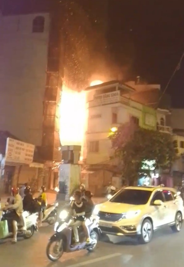 Đám cháy xuất phát từ tầng 3 của ngôi nhà có kết cấu 3 tầng một tum, diện tích mỗi sàn 30m2. Được biết ngôi nhà này được sử dụng để ở và kết hợp làm hàng may.