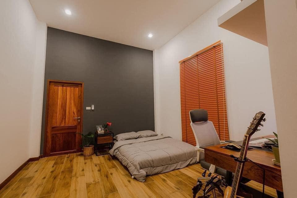 Công trình do kiến trúc sư Phan Hiển thực hiện. Anh chia sẻ, ngôi nhà được gia chủ gửi gắm rất nhiều tâm huyết. Họ mong muốn đó sẽ là tổ ấm tràn ngập hạnh phúc với 2 phòng ngủ, 2 vệ sinh, 1 khách, 1 bếp và sân vườn rộng rãi.