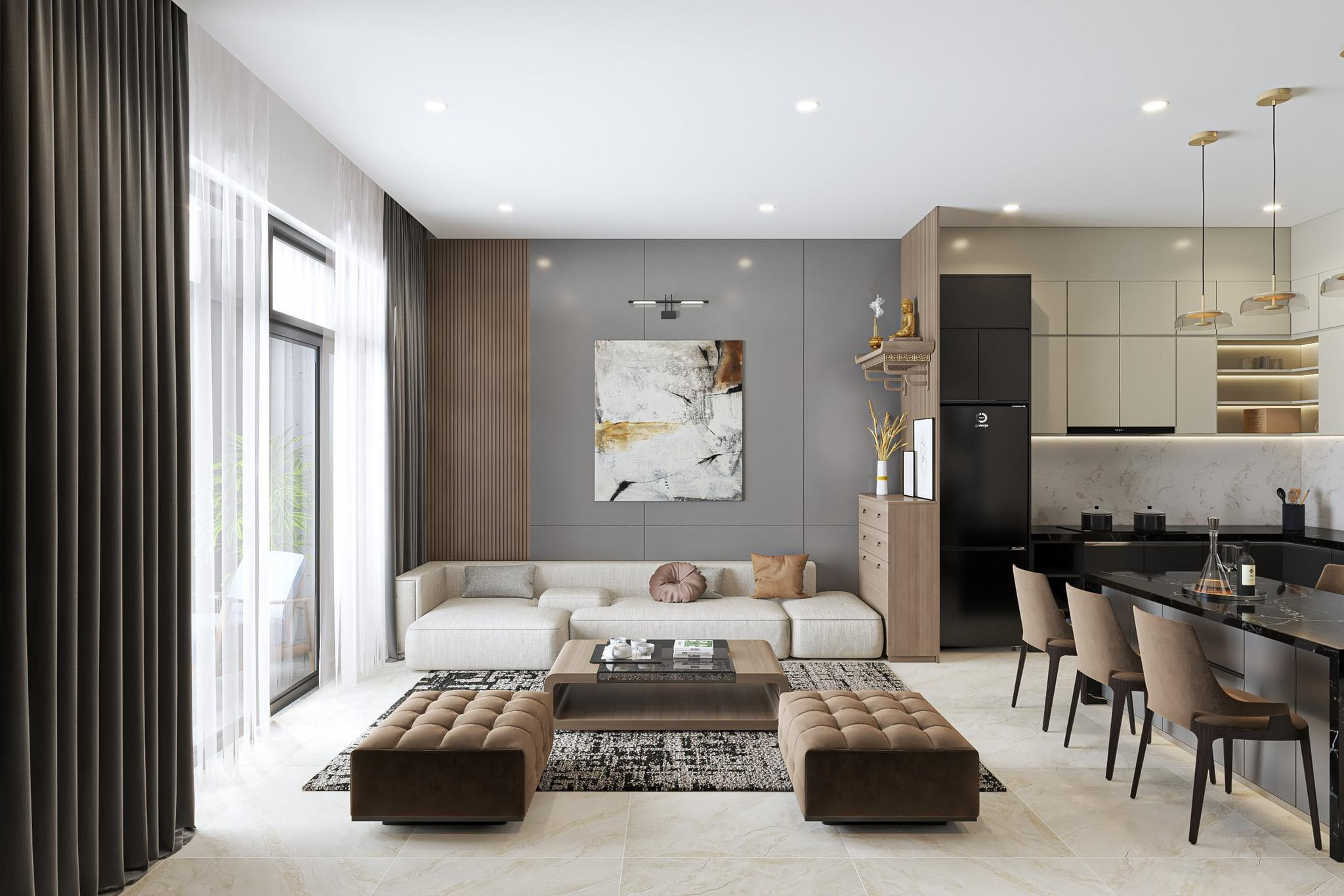 Nhà được hoàn thiện theo phong cách hiện đại, không gian thoáng mở.