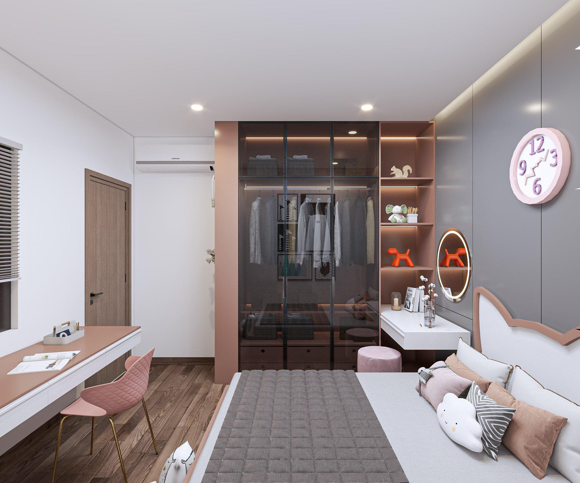 Phòng ngủ cho bé gái với gam màu hồng pastel và đồ decor ngộ nghĩnh. Ngôi nhà được xây dựng lên để đáp ứng nguyện vọng của chủ nhân về một nơi “trú ẩn”, nơi mà gia đình có thể quây quần bên nhau.
