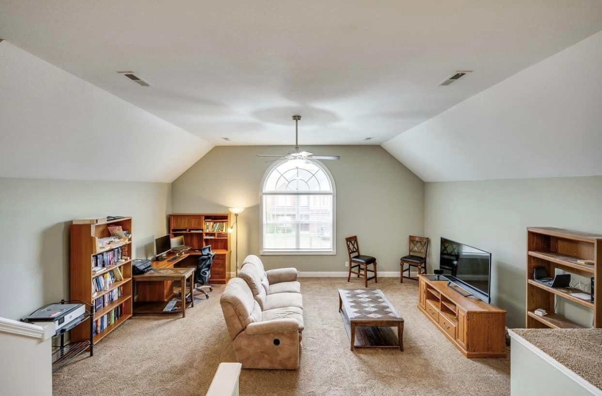 Đây là phòng nằm giữa 2 tầng 1 và 2 phục vụ cho thư giãn, đọc sách và giải trí. Chị Hoài Anh dự kiến sẽ di chuyển bớt đồ đạc để làm chỗ chơi cho con.