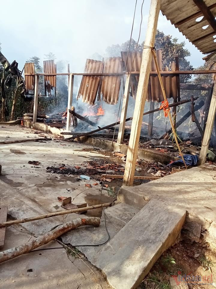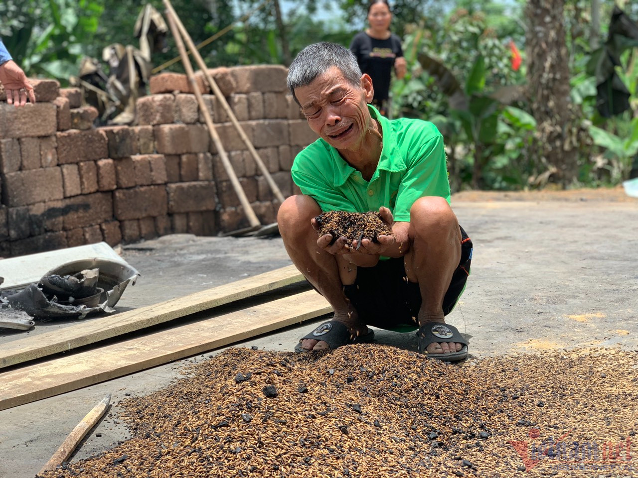 Ngồi mệt nhoài trên nền nhà trống hoác, tất cả tài sản, lúa gạo vừa bị thiêu cháy sau trận hỏa hoạn, ông Hùng chỉ biết bưng mặt khóc rưng rức: “Còn gì nữa đâu cô ơi. Lúa, ngô ông bà khó nhọc đi thu hoạch ngoài đồng về cũng bị cháy đen. Quần áo, giấy tờ cũng bị lửa đốt sạch, lấy gì để sinh sống tiếp đây”.
