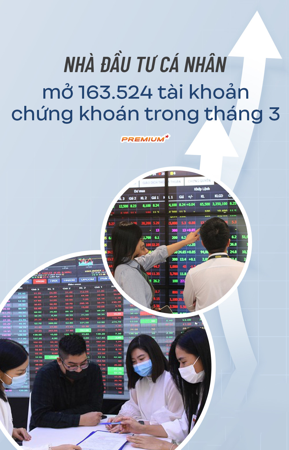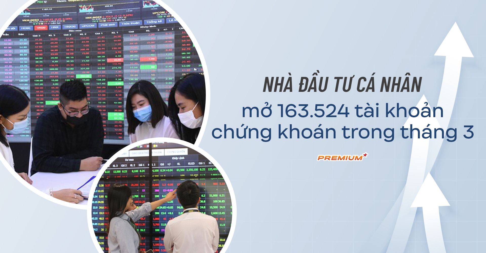 Trong tháng 3, nhà đầu tư cá nhân mở mới 163.524 tài khoản chứng khoán, tăng 44,5% so với tháng 2 và là mức cao nhất kể từ tháng 11/2023 đến nay.