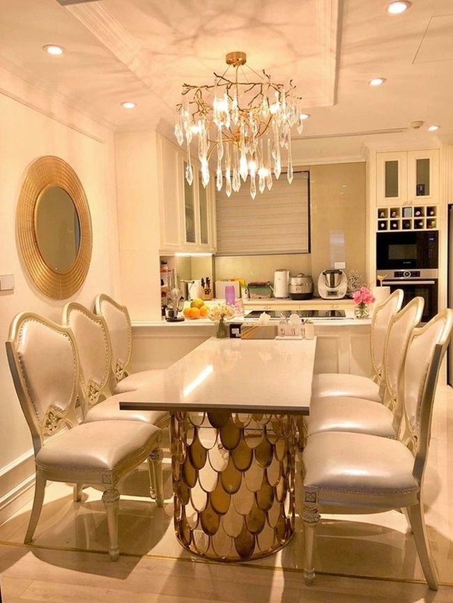 Không gian bàn ăn rộng rãi được sắp xếp liền kề với khu vực nhà bếp. Diệp Chi chăm chút từng góc nhỏ nhất cho căn nhà của mình. |