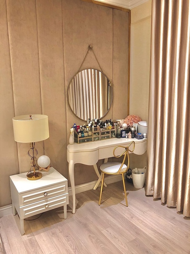 Khu vực bàn trang điểm của Diệp Chi cũng có sắc màu tương tự như căn nhà. |
