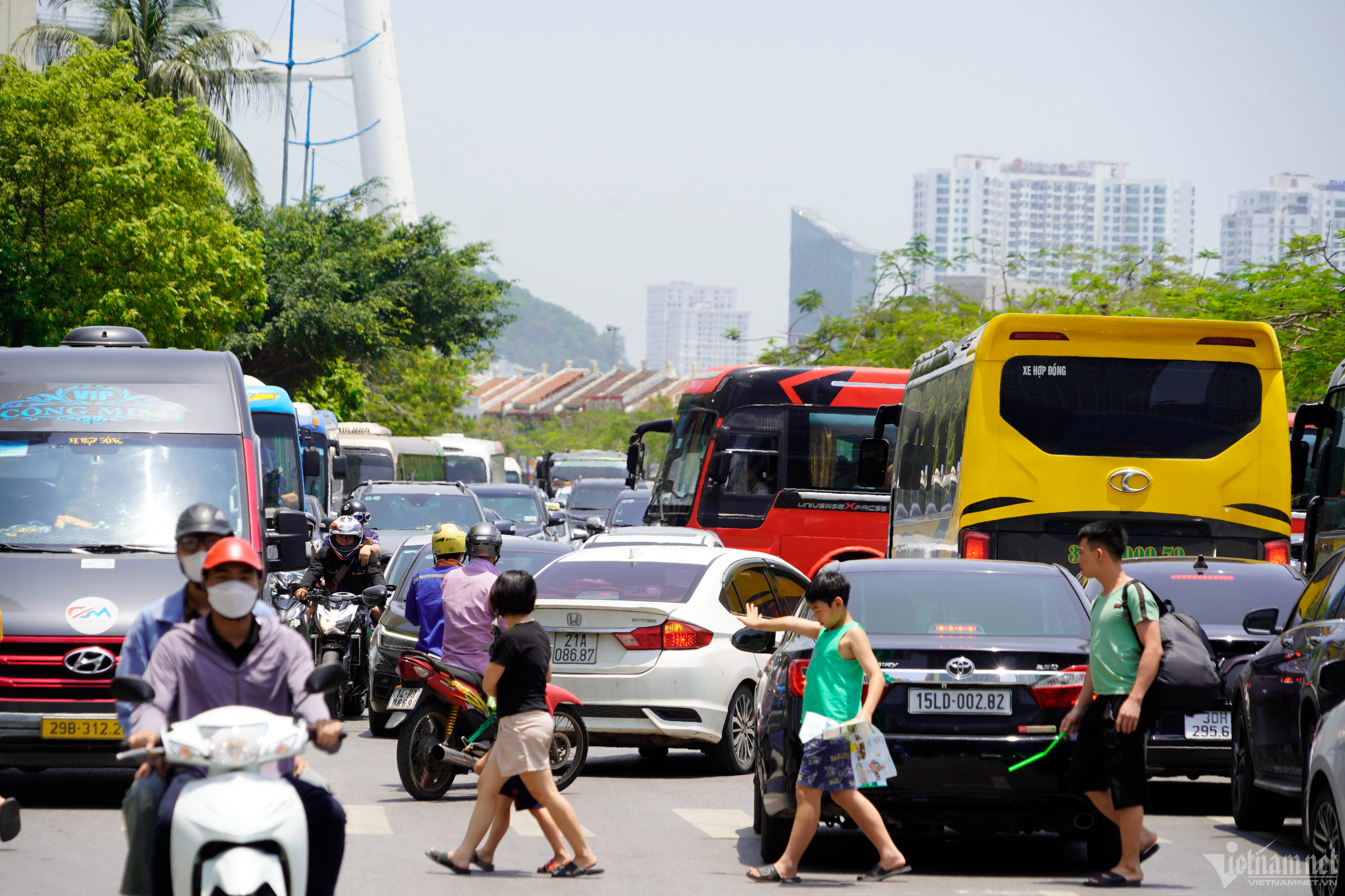 Do số lượng quá đông, hơn 3km đường Hạ Long và Vườn Đào tắc nghẽn giao thông, xe ô tô nhích từng mét, có chỗ tắc cứng gây hỗn loạn.