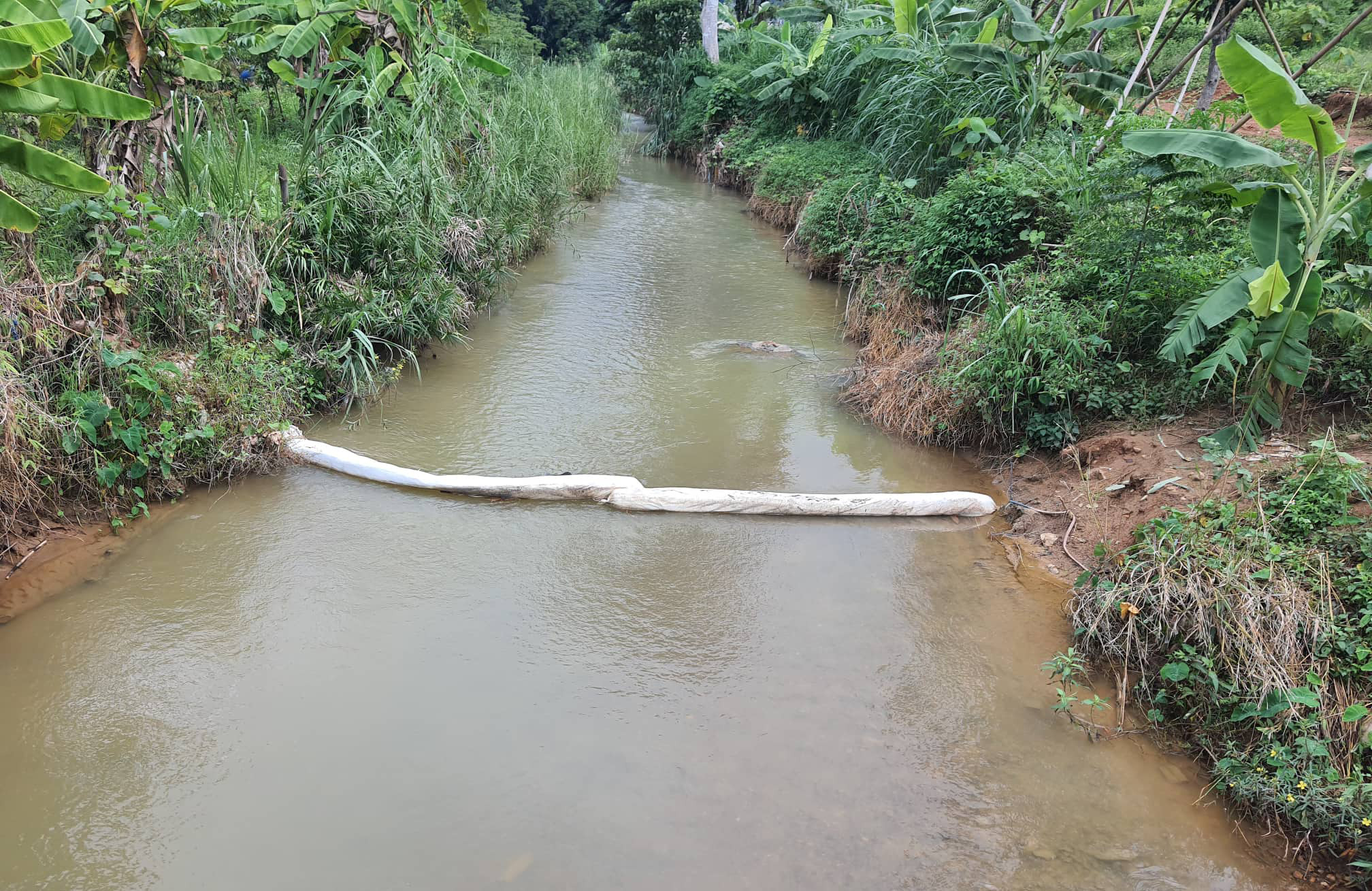 Trâu đàn đằm mình trong kênh dẫn nước thô vào nhà máy nước sạch sông Đà