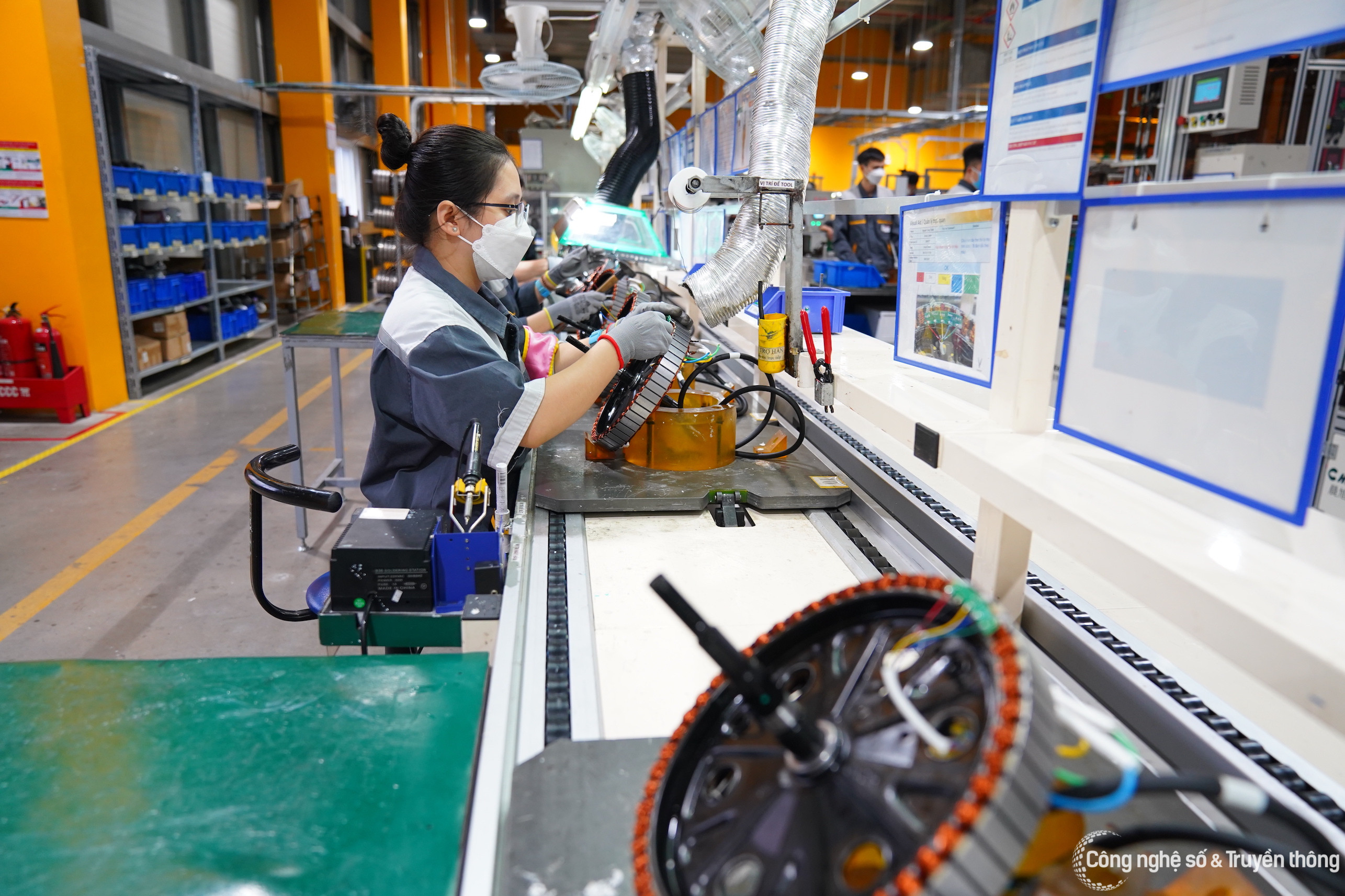 Ở nhà máy sản xuất động cơ điện bao gồm cả động cơ ô tô và xe máy. Cả hai loại động cơ Scooter được làm từ dây chuyền sản xuất Escooter. Từ dây chuyền sản xuất này, VinFast đã chế tạo động cơ từ bộ phận nhỏ nhất trở thành một mô-đun lớn hơn rồi trở thành động cơ hoàn chỉnh.