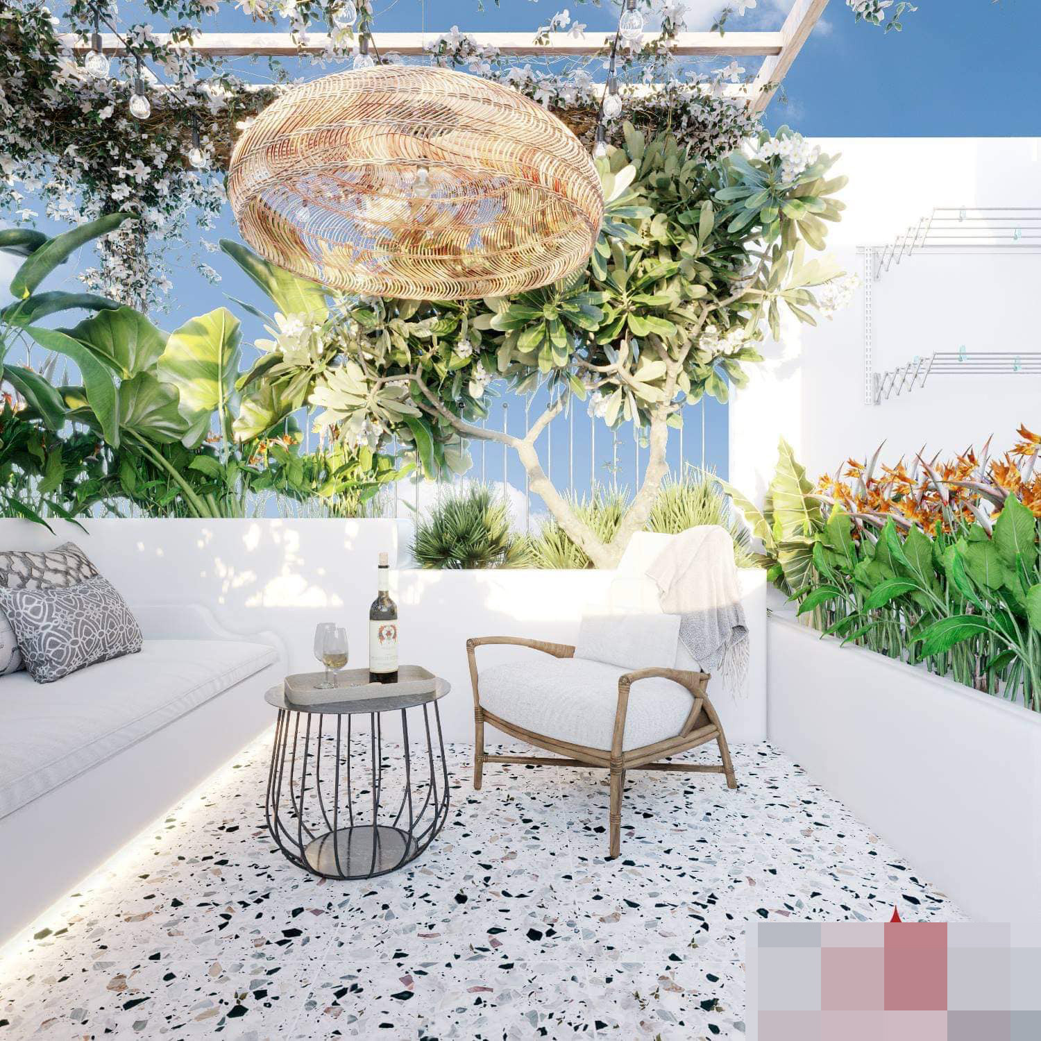 Mặc dù nhà nhỏ nhưng kiến trúc sư vẫn làm được một sân vườn trồng cây, uống trà và sống ảo trên sân thượng.
