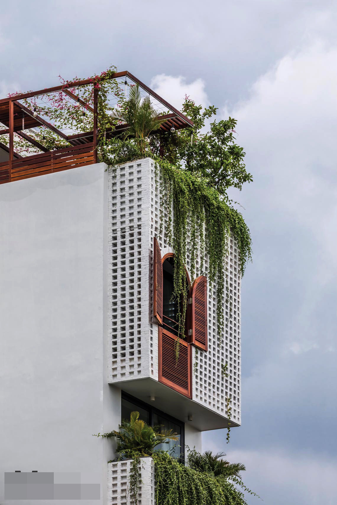 Với phương châm hòa mình với thiên nhiên, đón lấy những gì tinh túy nhất mà thiên nhiên mang lại, đội ngũ kiến trúc sư đã thổi sự sáng tạo vào từng ngõ ngách và đem hơi thở resort vào nhà bằng cách sử dụng gạch thông gió và vòm cửa tròn lam gỗ phía trước căn nhà đón gió và hứng nắng vào từng căn phòng, kết hợp các mảng xanh, layout siêu thông thoáng mát mẻ.