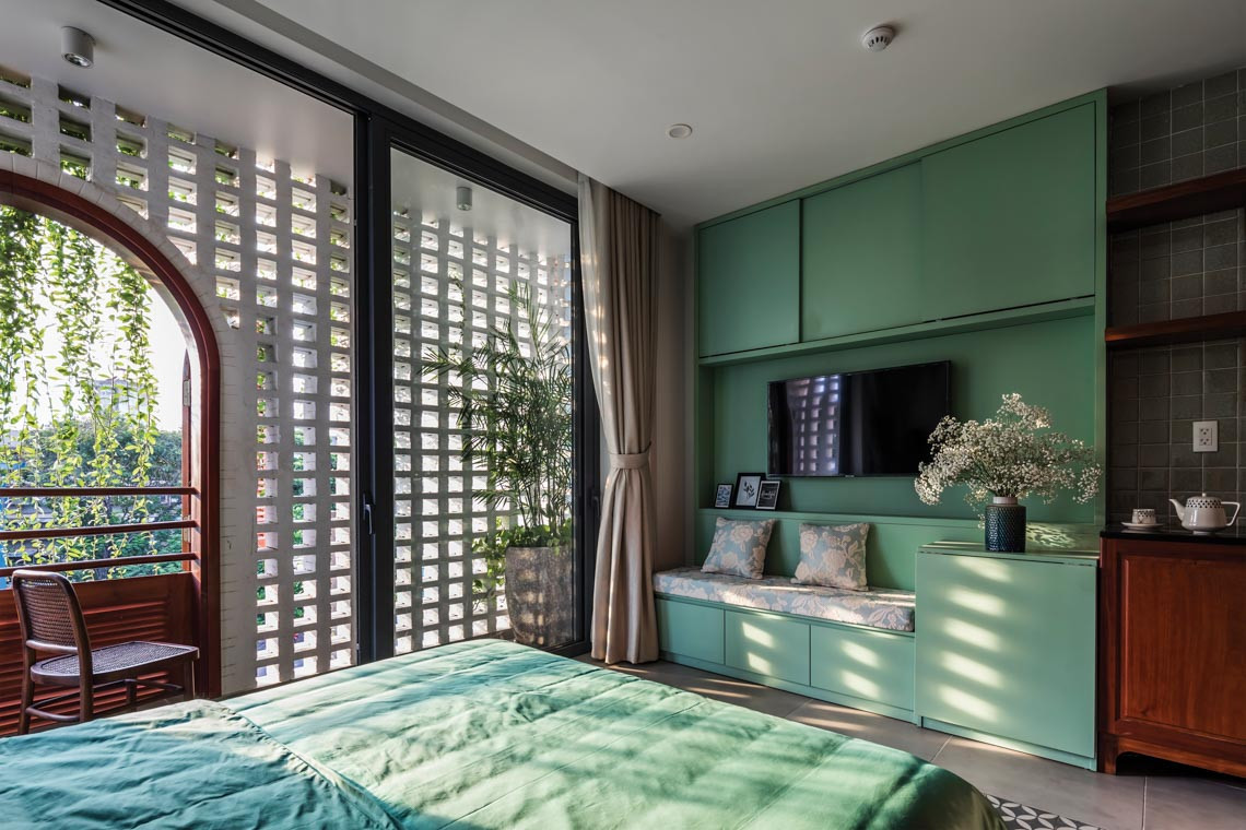 Các căn phòng cũng được sử dụng những gam màu đồng bộ, tạo nên một tổng thể hài hòa, một "resort phố" giữa lòng thành thị.
