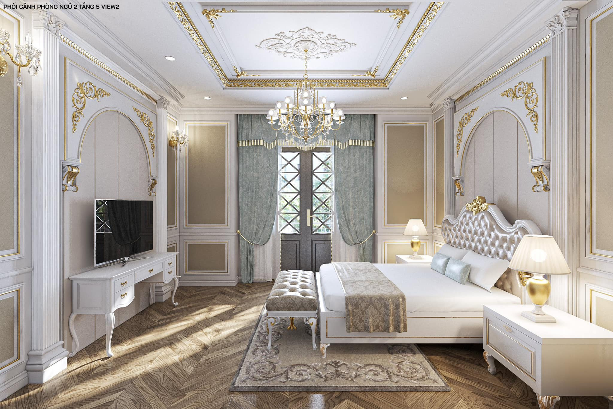 Phòng ngủ như không gian cung điện với thiết kế tinh xảo, chi tiết nội thất dát vàng.