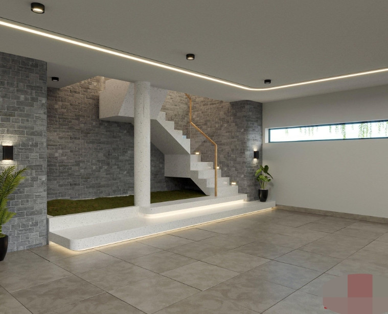 Gara rộng, để được 3 chiếc xe ô tô. Tầng 1 và các khu vực sinh hoạt chung như phòng khách, bếp thiết kế ở các tầng trên.