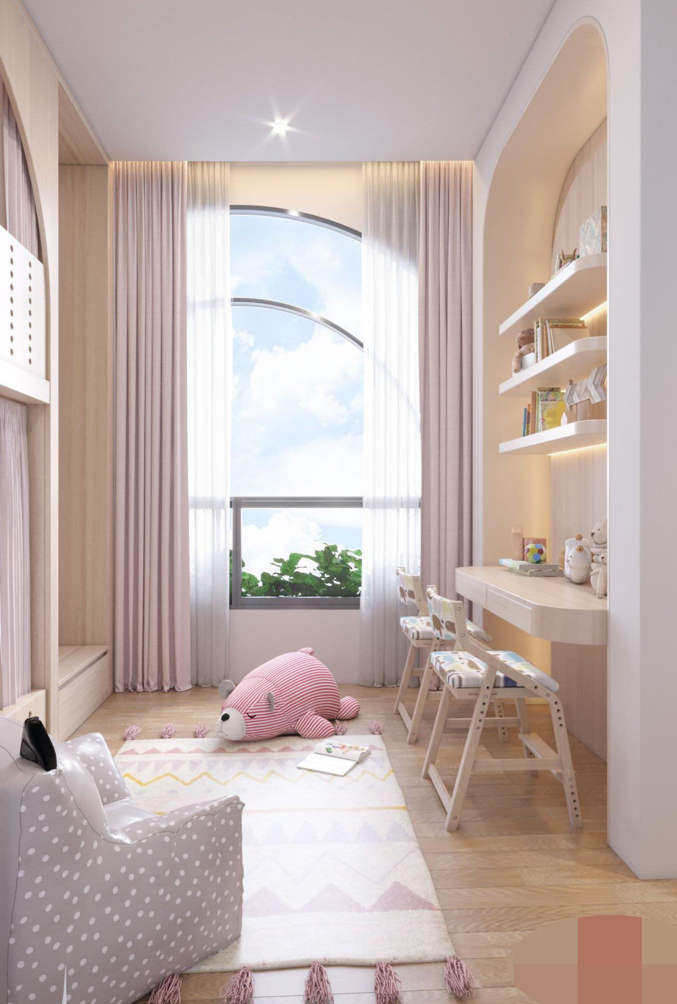 Phòng ngủ cho hai em bé siêu đáng yêu. Công năng sử dụng phù hợp cho lứa tuổi thích leo trèo, hiếu động. Nội thất đảm bảo hạn chế góc nhọn, tránh gây nguy hiểm cho các bé.