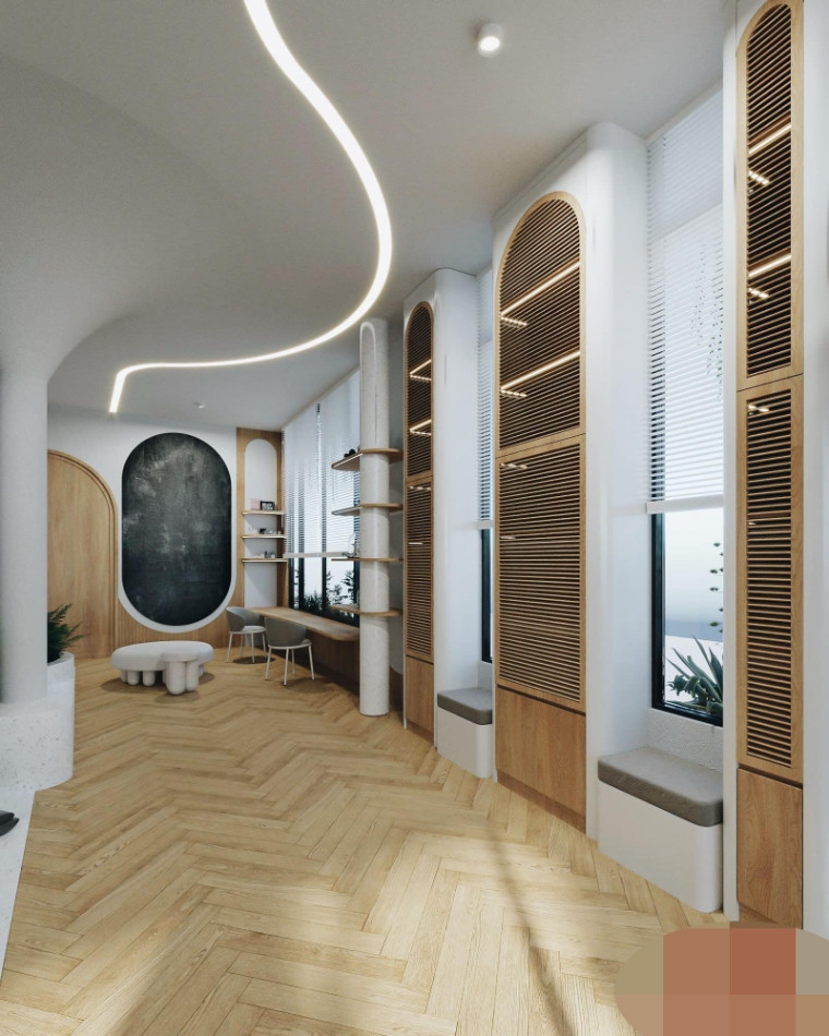 Những đường cong đặc trưng được đưa vào một cách nhẹ nhàng. Ô cửa sổ với mái vòm lớn phía hông căn nhà là điểm nhấn độc đáo. Ngoài việc giúp đón ánh sáng tự nhiên để ngôi nhà thêm phần thoáng đãng về không gian, đây cũng là nét mới kiến trúc sư Đỗ Nguyễn Anh Quý muốn đưa vào trong phong cách hiện đại.