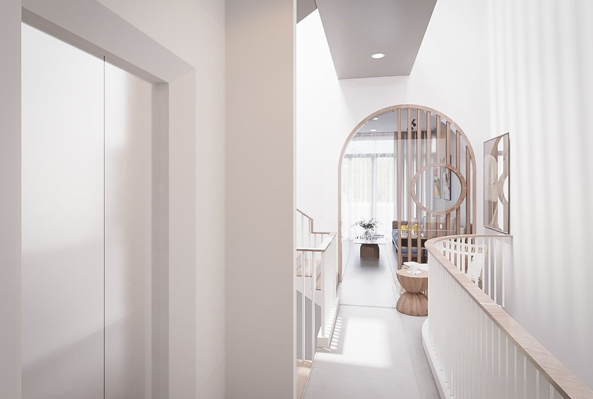 Các không gian mở, kết nối qua lam gỗ vừa thoáng đãng, dễ chịu lại tiết kiệm được chi phí xây dựng, thi công tường.