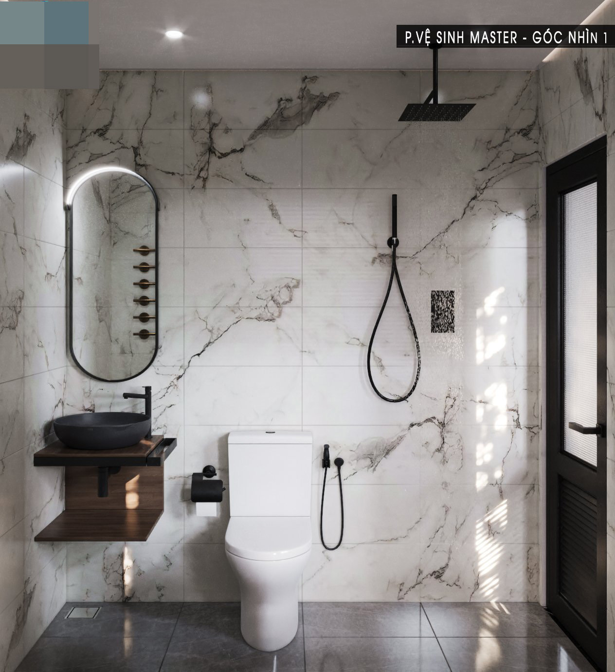 Phòng tắm và vệ sinh hiện đại, thiết bị cao cấp. Vòi hoa sen thả trần như khách sạn 5 sao.