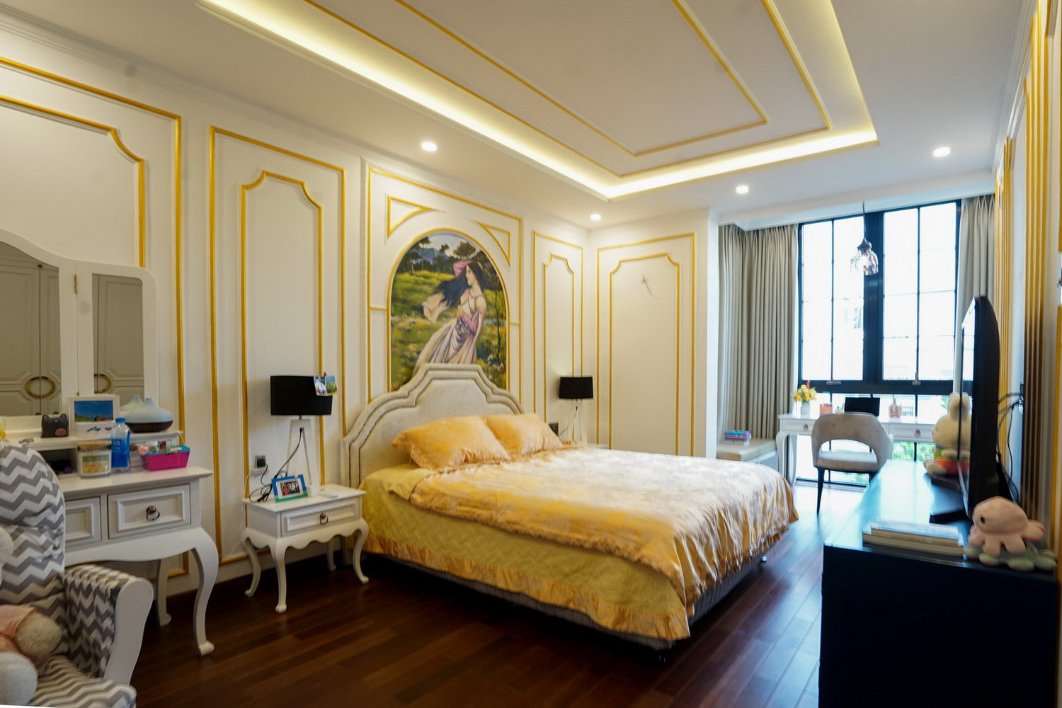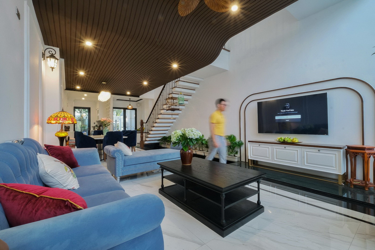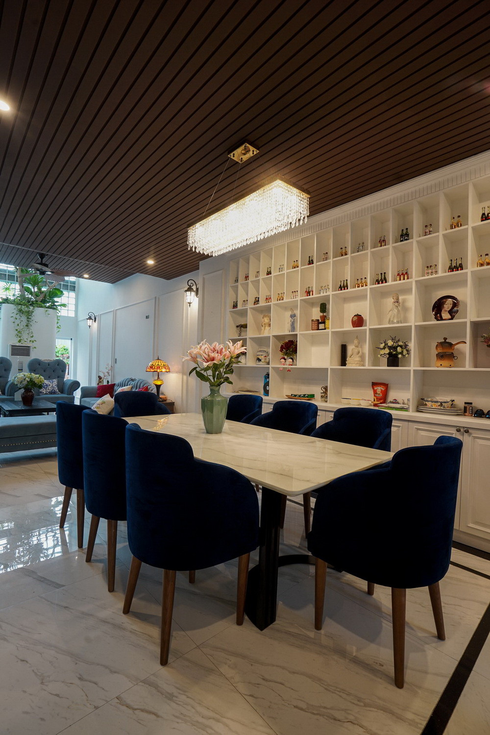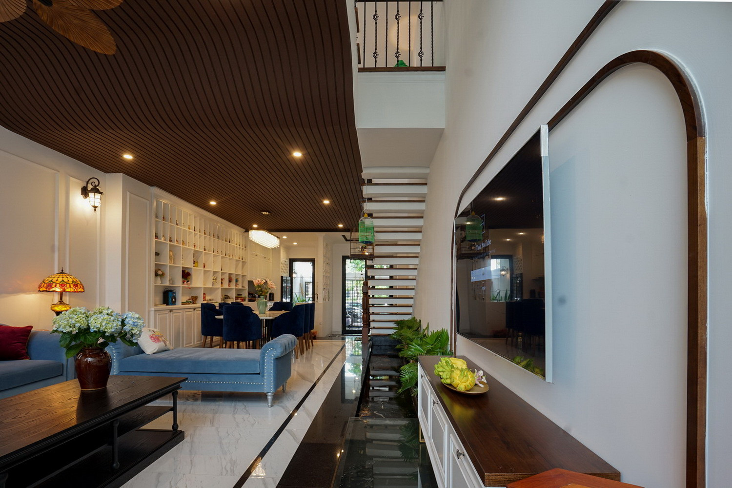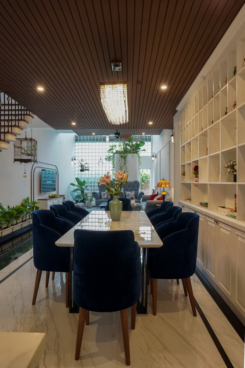 Nội thất được thiết kế theo phong cách cổ điển Đông Dương nhưng vẫn mang đến sự trẻ trung bằng những thủ pháp hình khối điểm nhấn mang lại không gian nội thất cá tính và độc đáo.