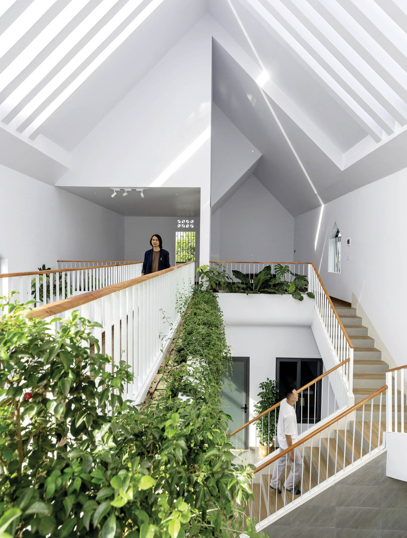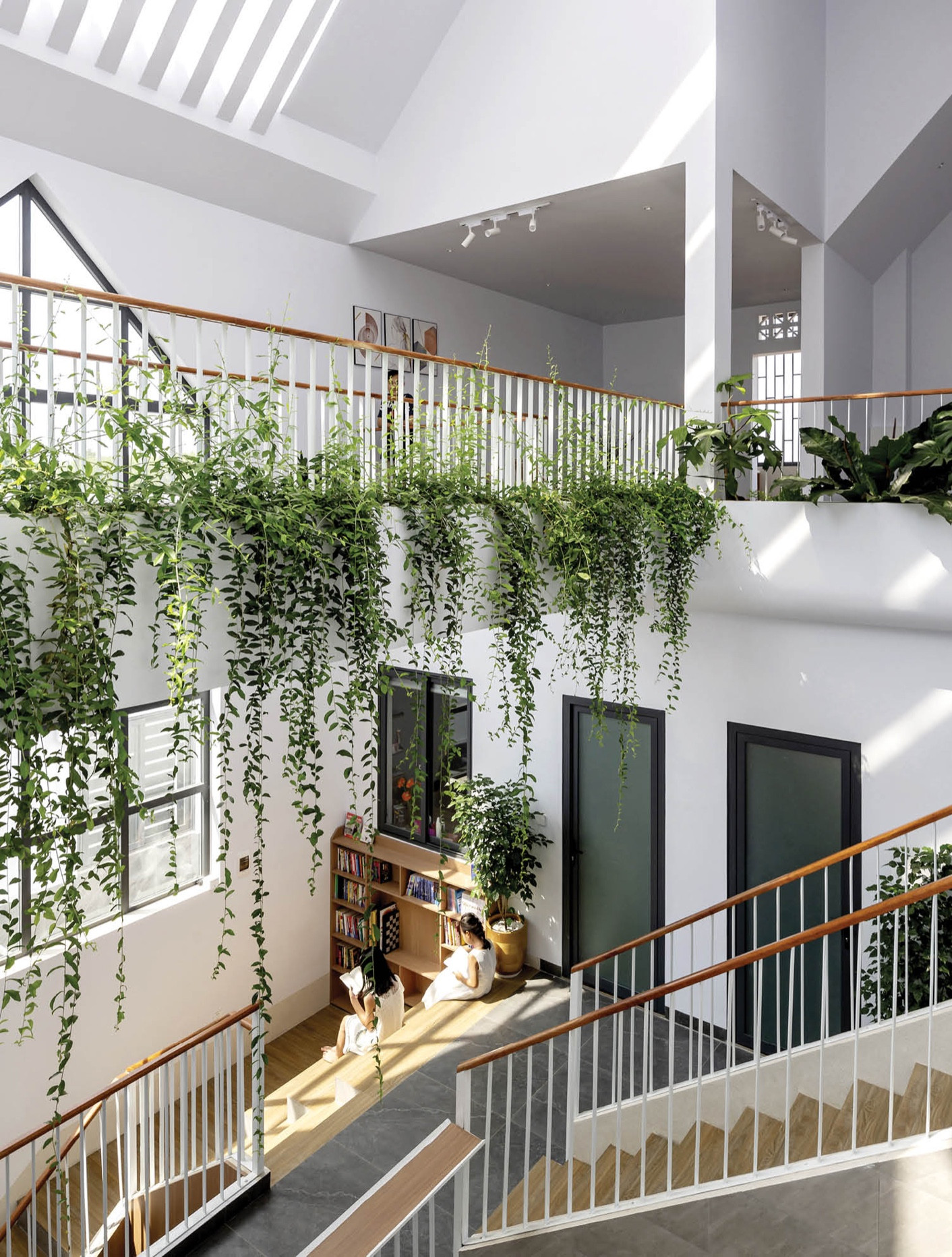 Các tầng kết nối với nhau nhờ vào khoảng cây xanh và khoảng thông gió giúp cho không khí trong nhà luôn mát mẻ, giảm độ ồn và bụi từ bên ngoài.