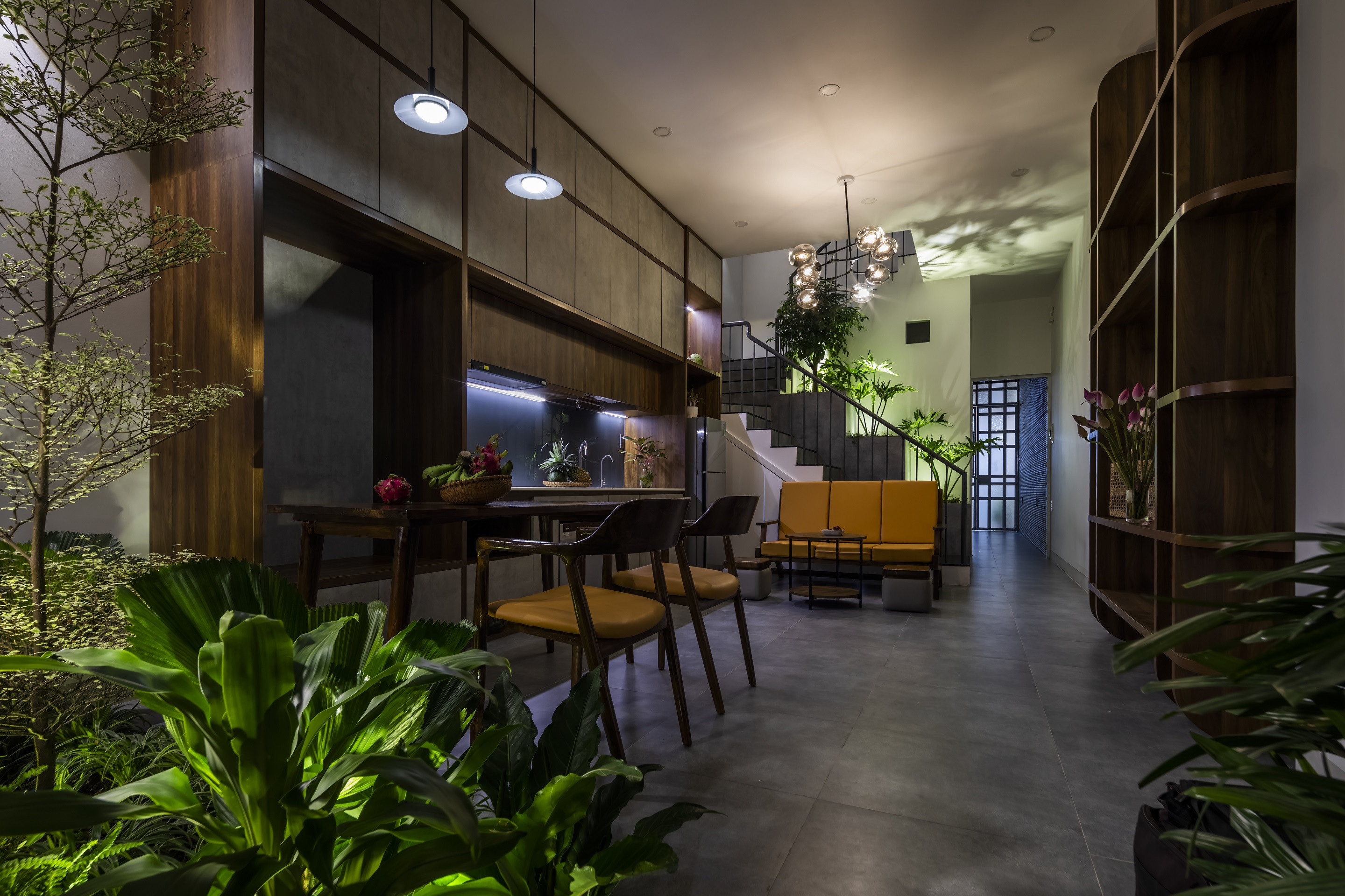 Tuy vậy, với mặt bằng dạng nhà phố hẹp về chiều ngang và cách xây trải dài, chia phòng thông thường sẽ gây thiếu sáng, khả năng thông gió và chống ồn kém, cũng như không đủ khoảng không gian xanh cho sở thích của gia chủ.