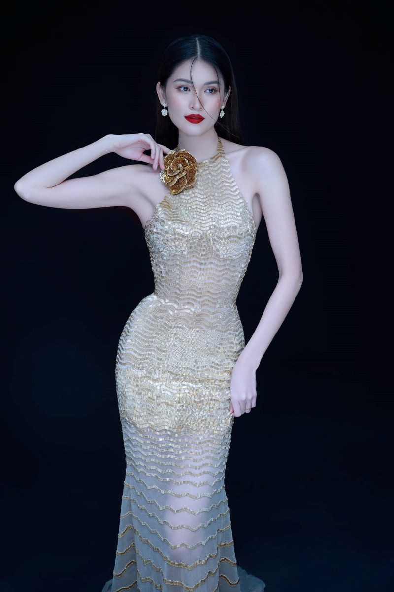 Nhã Phương tái xuất với layout khá Tây trong thiết kế vai vuông, dáng dài kín đáo. Cùng chung khung hình là Diễm My 9x với chiếc váy ôm sát, xẻ sâu có đường khóa zip màu bạc làm điểm nhấn.Thuỷ Tiên tươi tắn khi diện chiếc váy cổ yếm màu trắng tinh khôi cùng phần thân dưới được lấy cảm hứng từ áo vest lạ mắt. Cô để kiểu tóc thẳng dài và trang điểm nhấn vào đôi môi đỏ rực.Ngọc Châu thu hút mọi ánh nhìn với mái tóc tết dài quá gối được thiết kế bất đối xứng. Phần đá đính kết dọc mạn sườn giúp tổng thể trang phục trở nên thanh thoát và gợi cảm hơn.Ái Phương khoe khéo vóc dáng siêu mẫu trong thiết kế sequin màu bạc với phần đính đá và lông vũ dày dặn. Với kiểu dáng hai dây cổ trễ, cô phối cùng choker dáng mảnh đồng màu với trang phục.Á hậu Thuỳ Dung kiêu sa với chiếc váy "vảy vàng" tôn triệt để vóc dáng với các đường đính kết lượn sóng trên nền vải voan tạo hiệu ứng ánh sáng. Với bông hoa to bản được đính trên cổ, người đẹp tiết chế phụ kiện để tránh sự rườm rà.Văn Mai Hương lộng lẫy trong thiết kế màu vàng ánh kim, với kiểu dáng cúp ngực tôn lên bờ vai thon kèm dây đan chéo nữ tính. Nữ ca sĩ để tóc xoăn buông xõa và màu môi đỏ đậm.Bảo Ngọc kiêu kỳ tạo dáng với chiếc váy cổ cao màu vàng chanh bắt mắt - thiết kế mang kiểu dáng bút chì, vai vuông giúp tôn lên chiều cao nổi bật của nàng hậu. Cô để tóc mái lơi đằm thắm và phối cùng phụ kiện màu gold.Thiên Ân đẹp thần thái với layout màu cam nude cùng kiểu tóc búi rối sang chảnh. Cô diện thiết kế đơn sắc với điểm chiết eo tinh tế và các đường diềm điệu đà, kết hợp cùng bông tai dáng tròn ăn nhập với trang phục.Hoàng Oanh thanh lịch trong tà áo dài trắng với phần cổ khoét hình giọt nước, vai bồng cách tân cùng các đường gân nổi quanh cổ và tay áo. Cô lựa chọn túi da đồng điệu để hoàn thiện outfit của mình.Phương Nhi khoe làn da không tì vết trong chiếc váy màu cam được cắt xẻ nhẹ nhàng tại thân trên và xòe rộng thân dưới. Cô trang điểm theo tone màu đỏ cam rực rỡ và không sử dụng phụ kiện.