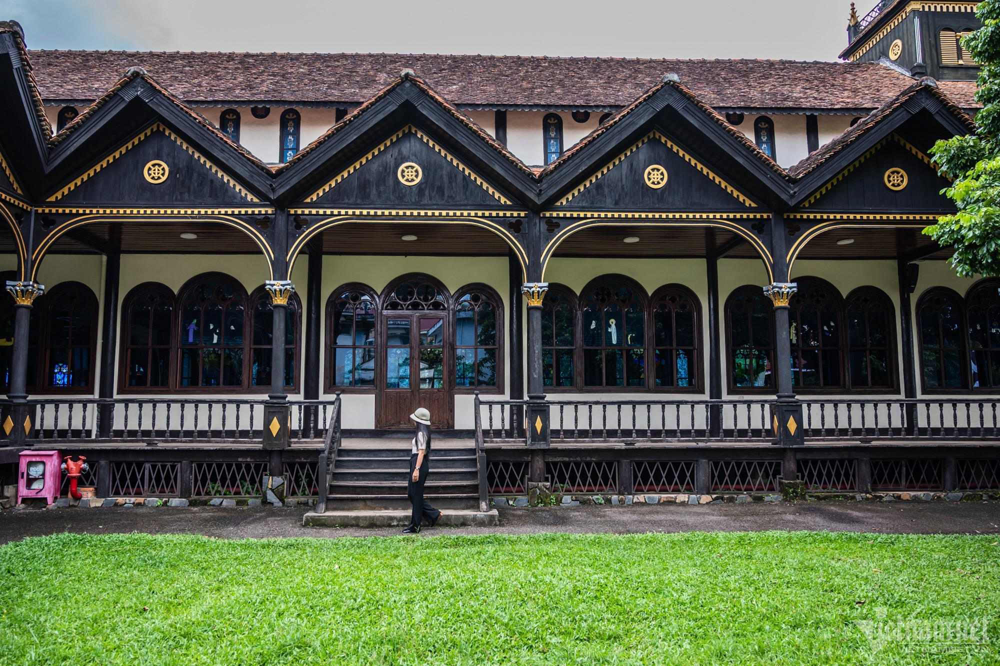 Sự kết hợp đó đã giúp công trình vừa mang vẻ đẹp của những đường nét cổ kính phương Tây, vừa phảng phất hơi thở của Tây Nguyên đại ngàn.