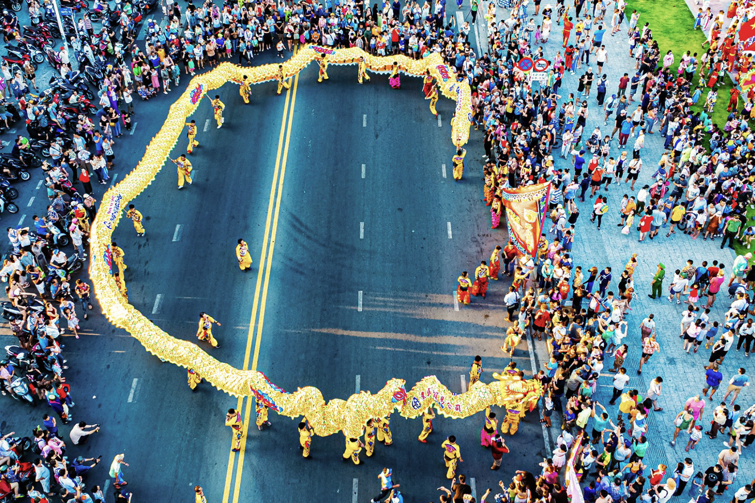 Du khách hò reo cổ vũ 'rồng lớn nhất Việt Nam' biểu diễn trên phố Nha Trang