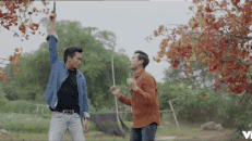 Hai diễn viên đang được yêu thích trong 'Nhà trọ Balanha' diễn lại một trích đoạn trong phim trước sự cổ vũ nhiệt tình của fan hâm mộ trong cái nóng hầm hập.