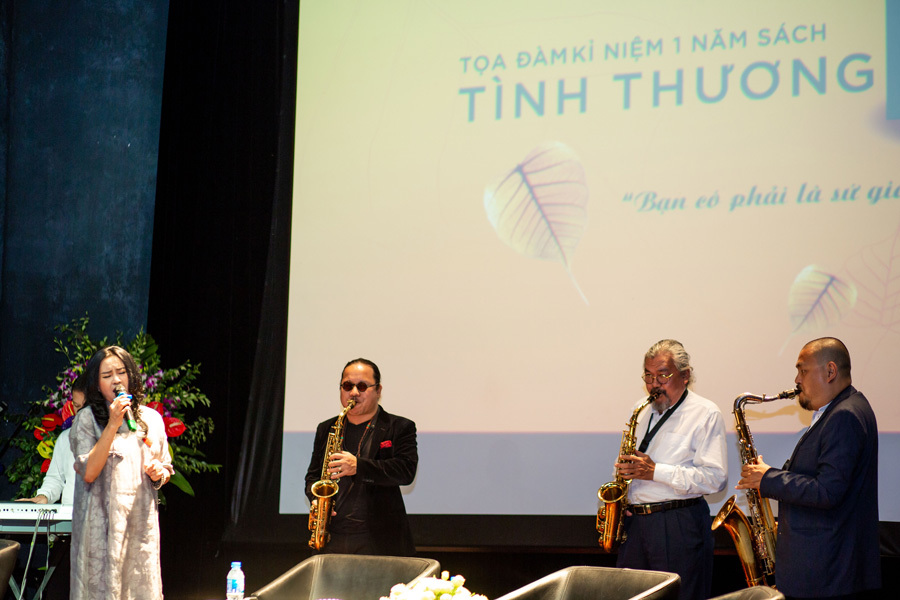 | Ca sĩ Thanh Lam, nghệ sĩ Trần Mạnh Tuấn,...cùng nhau ngân lên những khúc nhạc yêu thương tại buổi toạ đàm. |